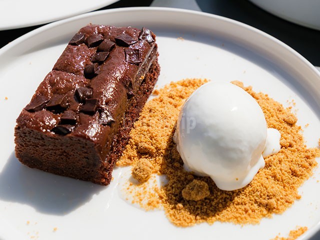 Crepe con huevo a baja temperatura, setas shimeji, carne vegetal y salsa de pesto de edamame