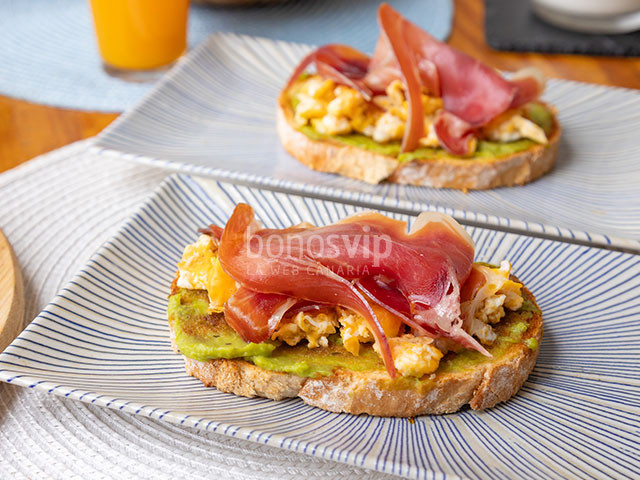 2 Tosta de aguacate, jamón serrano y huevo revuelto