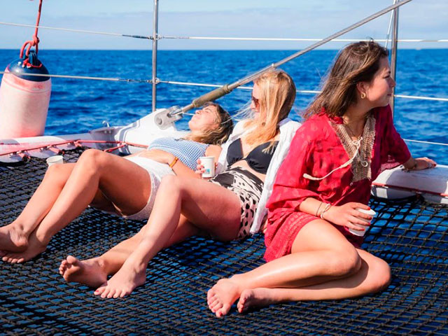 ¡Desconexión a bordo! Una experiencia única con sabor a mar... Disfruta de una tarde en alta mar en pareja, familia o amigos a bordo de este catamarán ecológico. Atardecer, el sonido del viento y las olas... ¡El plan perfecto!