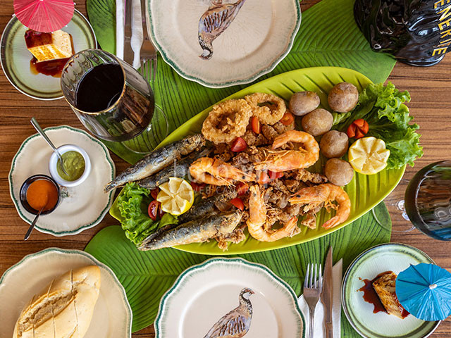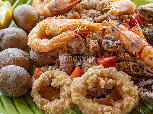 Fritura de pescado con chopitos, langostinos, sardinas frescas, calamares a la romana