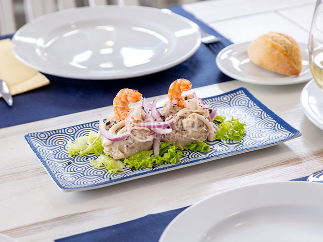Ensaladilla de batata canaria ecológica y langostinos frescos