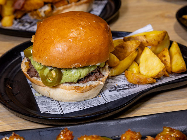 Verde Explosiva: smash, queso en finas lonchas manchego, jalapeños, guacamole chunk y mayo casera "verde"