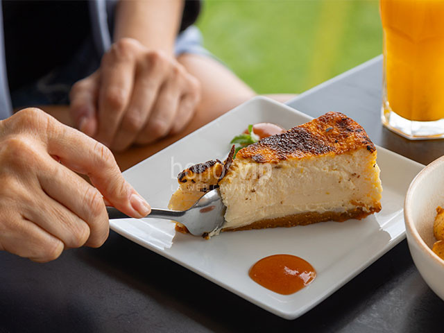 Tarta de queso ahumado de Teno con culís de tamarillos