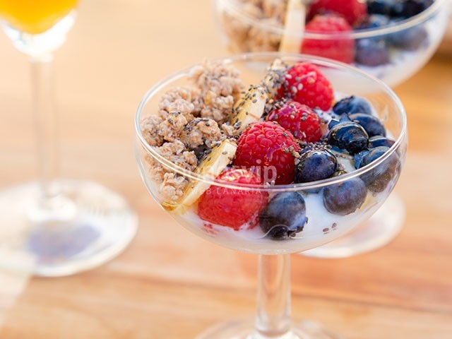 2 Copas de yogurt con muesli, fruta fresca y miel o semillas de chía