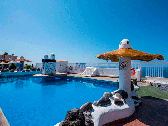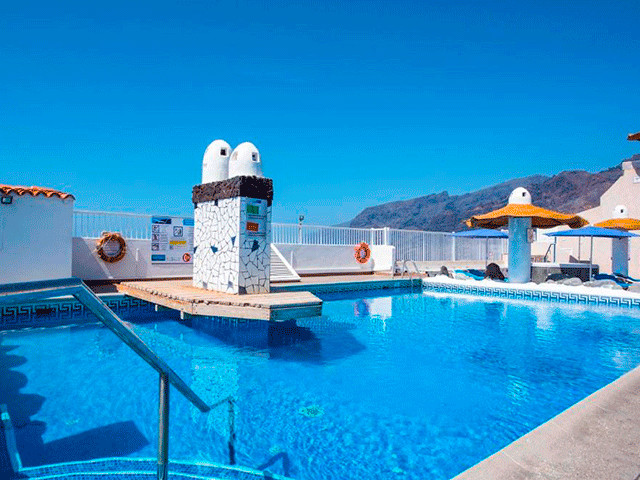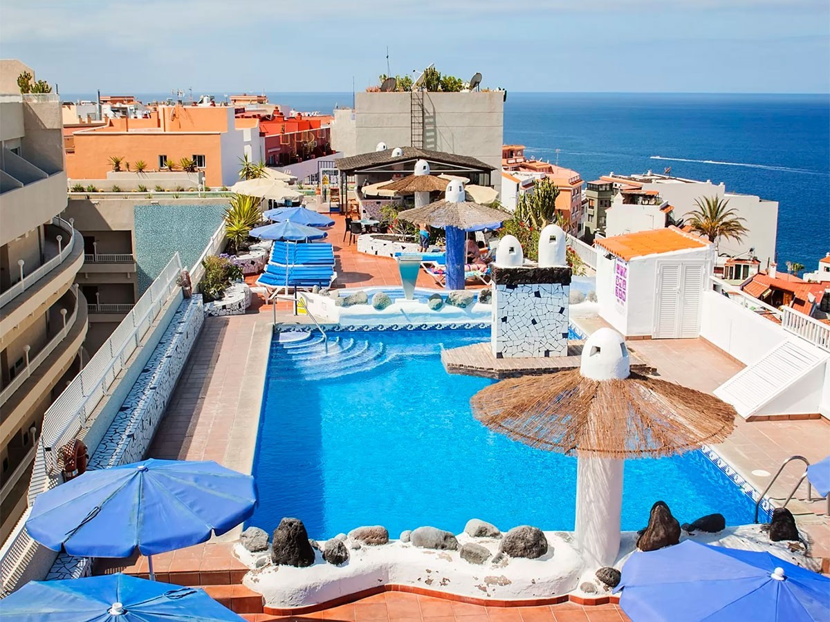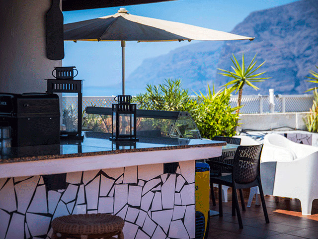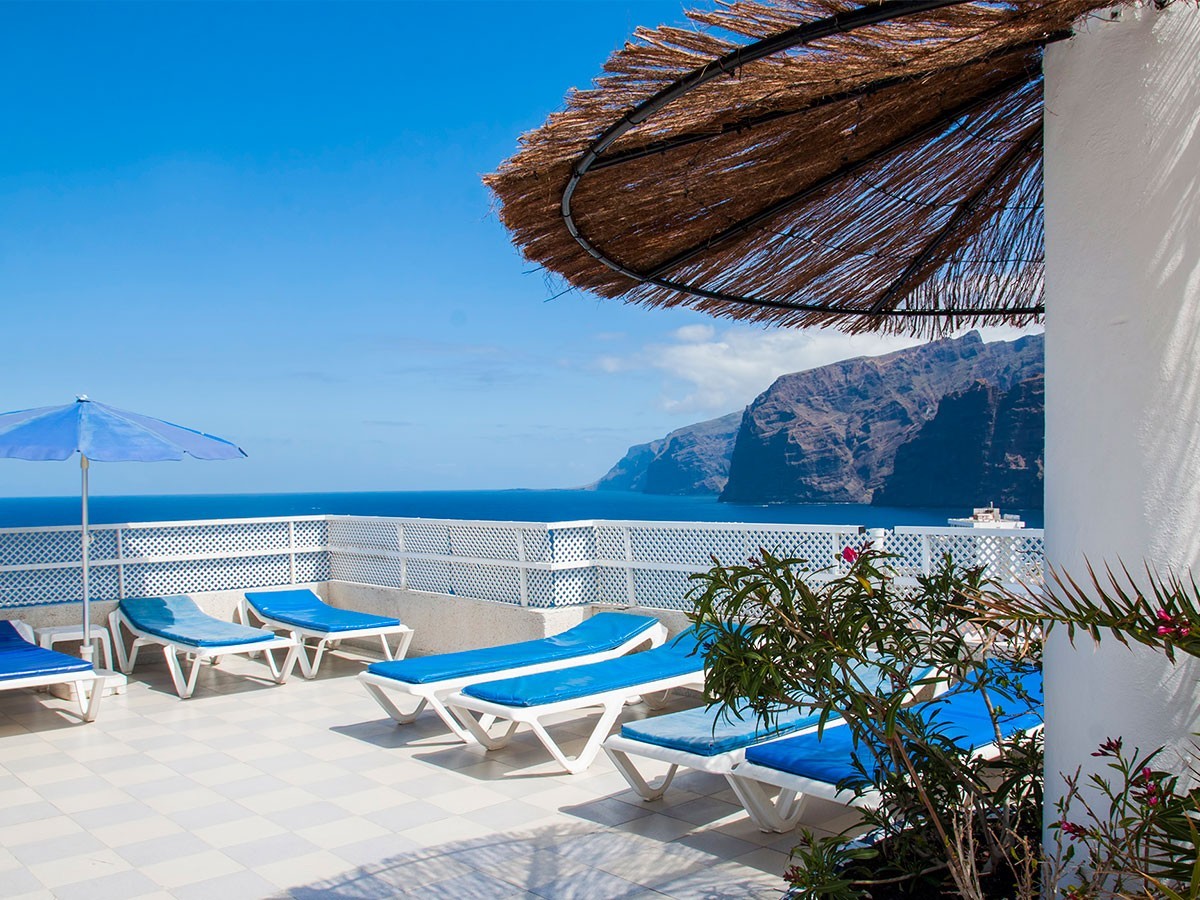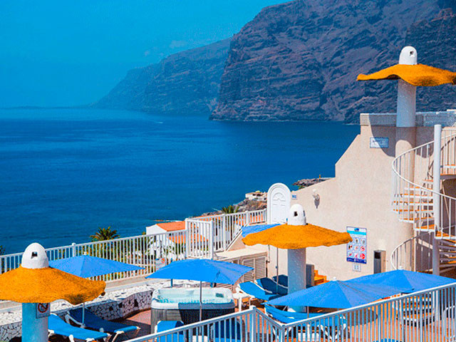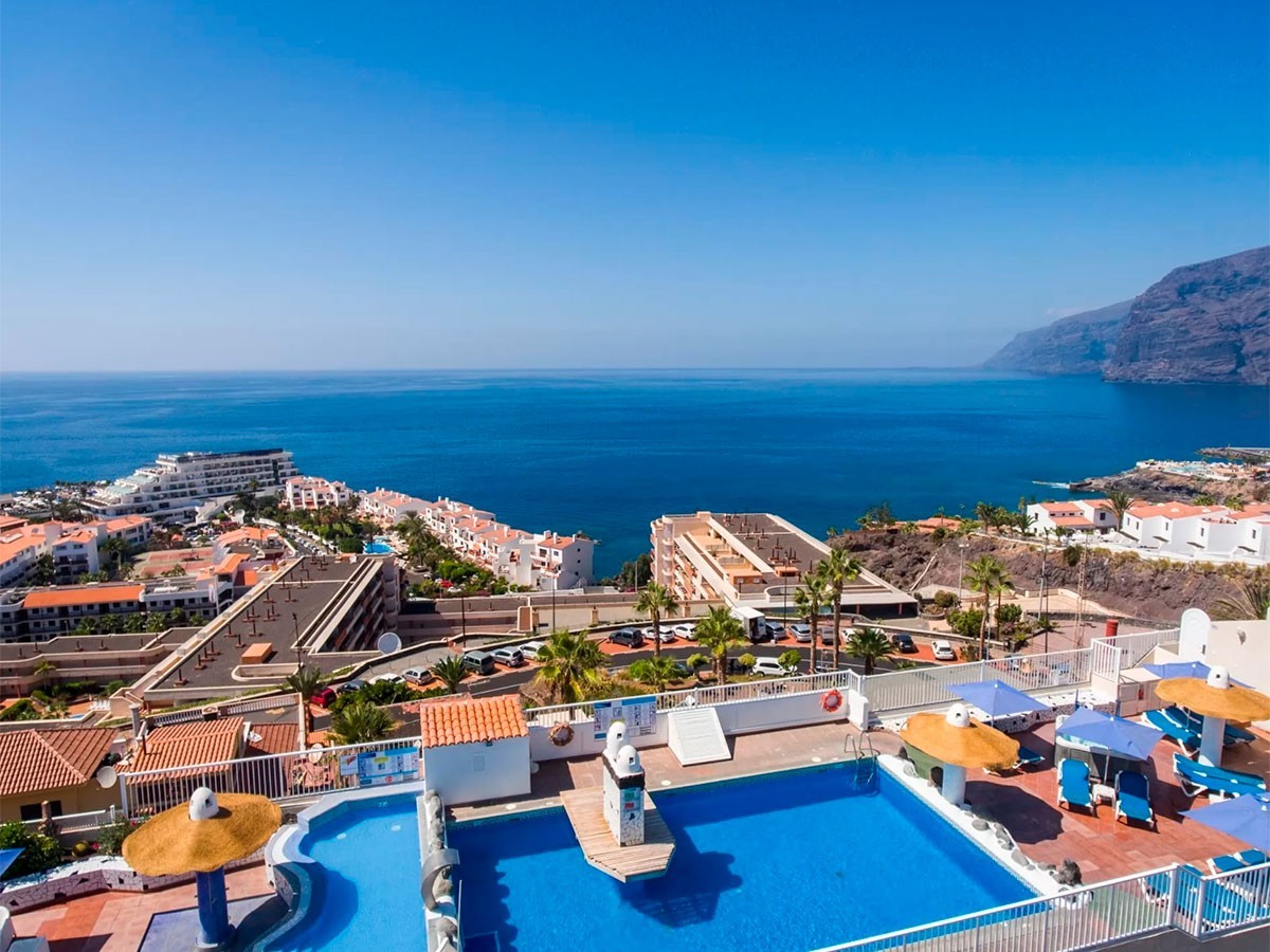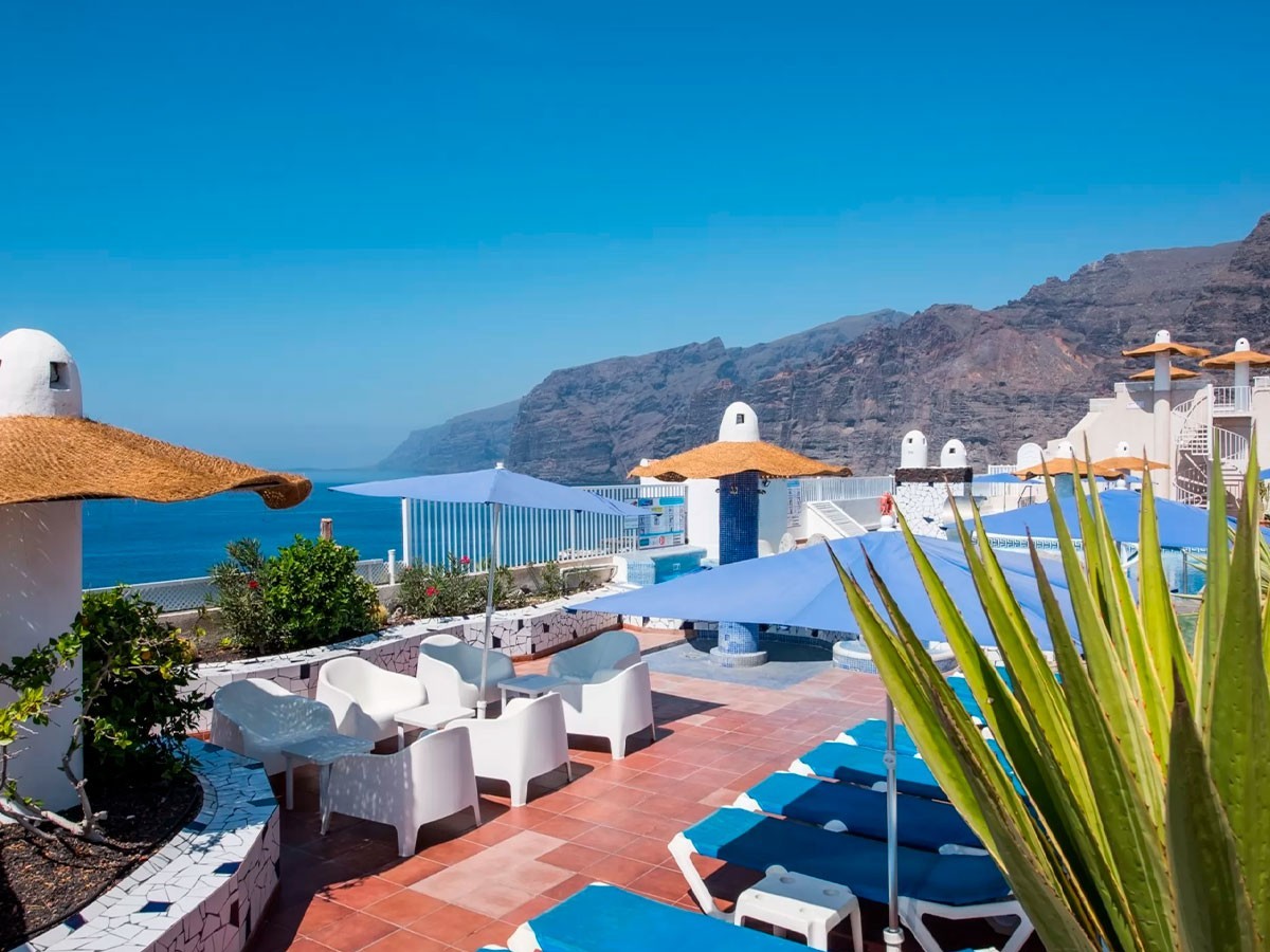 Este complejo está construido sobre un pequeño centro comercial y posee una ubicación privilegiada en pleno corazón de Puerto Santiago, desde donde se pueden observar los Acantilados de Los Gigantes, así como las islas de La Gomera y La Palma. Este hermoso rincón del Sur Tenerife es un antiguo pueblo pesquero que se caracteriza por su clima cálido durante todo el año. El entorno es tranquilo, un lugar idóneo para parejas, familias con niños pequeños, amantes del Surf y todo aquel que quiera disfrutar de unas vacaciones relajantes
