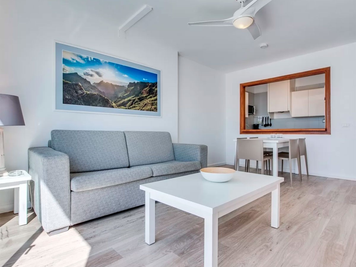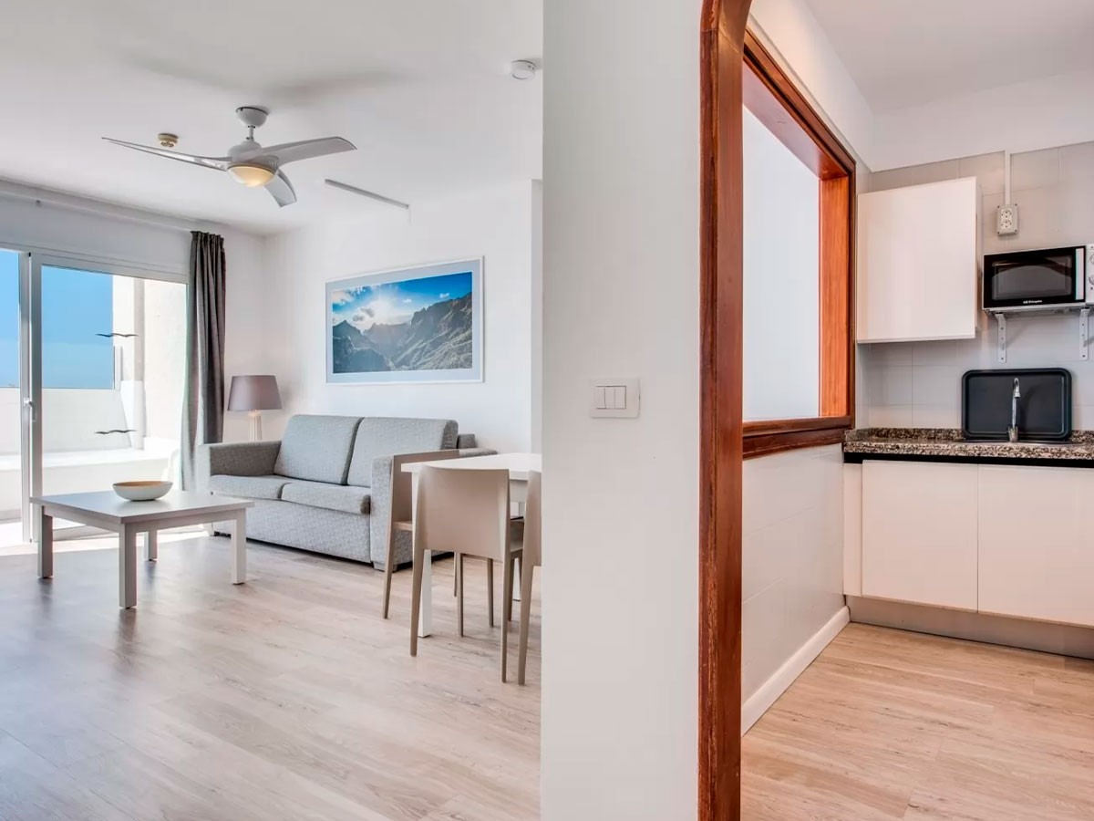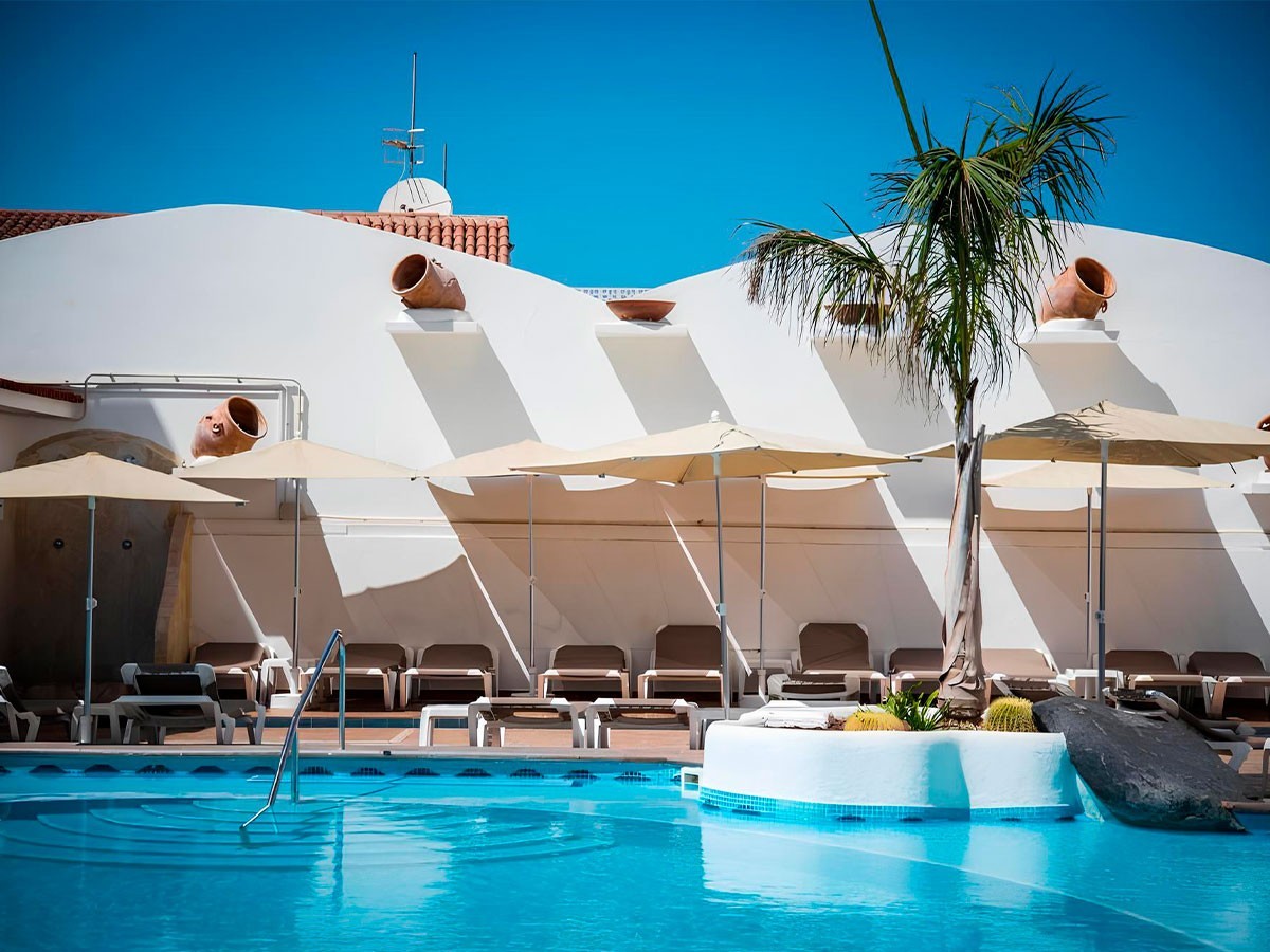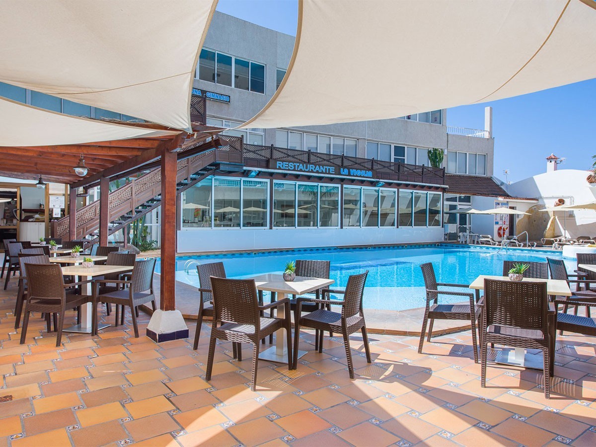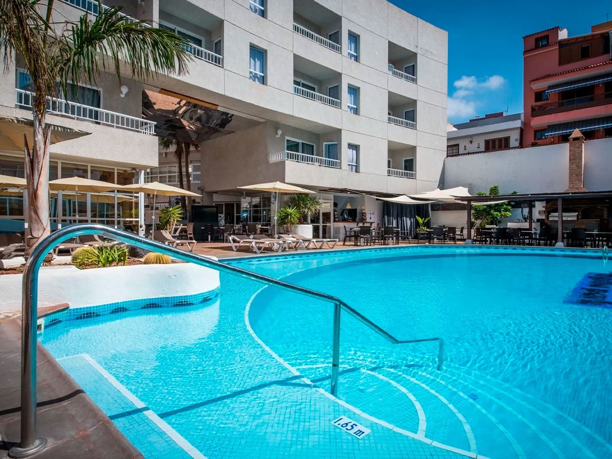 Este complejo está construido sobre un pequeño centro comercial y posee una ubicación privilegiada en pleno corazón de Puerto Santiago, desde donde se pueden observar los Acantilados de Los Gigantes, así como las islas de La Gomera y La Palma. Este hermoso rincón del Sur Tenerife es un antiguo pueblo pesquero que se caracteriza por su clima cálido durante todo el año. El entorno es tranquilo, un lugar idóneo para parejas, familias con niños pequeños, amantes del Surf y todo aquel que quiera disfrutar de unas vacaciones relajantes